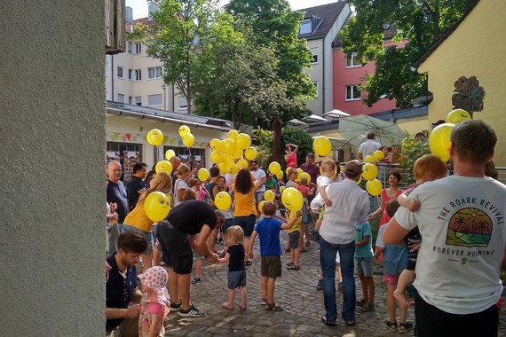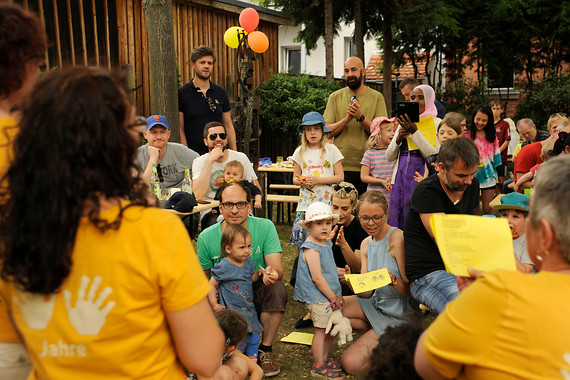 Am 6. Juli 2019 konnten wir mit einem großen bunten Fest unser 10jähriges Krippenjubiläum feiern. Im Garten und in den Räumen des Kulturladen Nord in der Wurzelbauerstraße (dort stand übrigens die Wiege des Zentrum Kobergerstraße e.V.) trafen sich zahlreiche ehemalige und aktuelle Krippenfamilien und andere Wegbegleiter der letzten 10 Jahre zu einem schönen Nachmittag mit kulinarischen Köstlichkeiten, Bastelaktionen, Liedern, Zaubereien, Kasperlevorführung, Luftballons und vielen „alten Geschichten“. Sehen Sie selbst, wie schön es war: