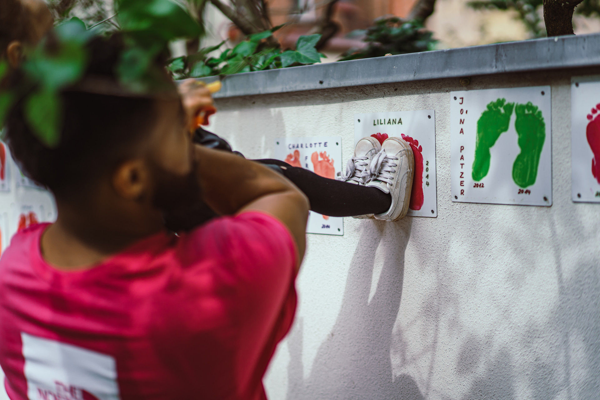 Am letzten Krippentag vor den Sommerferien findet unser Abschlussfest statt. Dabei verabschieden wir uns von den Familien, deren Kinder in den Kindergarten wechseln. Die Kinder bekommen ihr Krippenbuch, das ihre Vorlieben und die Entwicklung während der Krippenzeit fotografisch dokumentiert, wir schwelgen in Erinnerung an die gemeinsame Zeit, singen und essen mitgebrachte Leckereien zusammen mit allen Krippenfamilien. Außerdem präsentieren wir die Aluplatten mit den Fußabdrücken der Kinder, welche wir gestaltet haben, um sie als Erinnerung an jedes einzelne Kind an unsere Gartenmauer zu befestigen.
